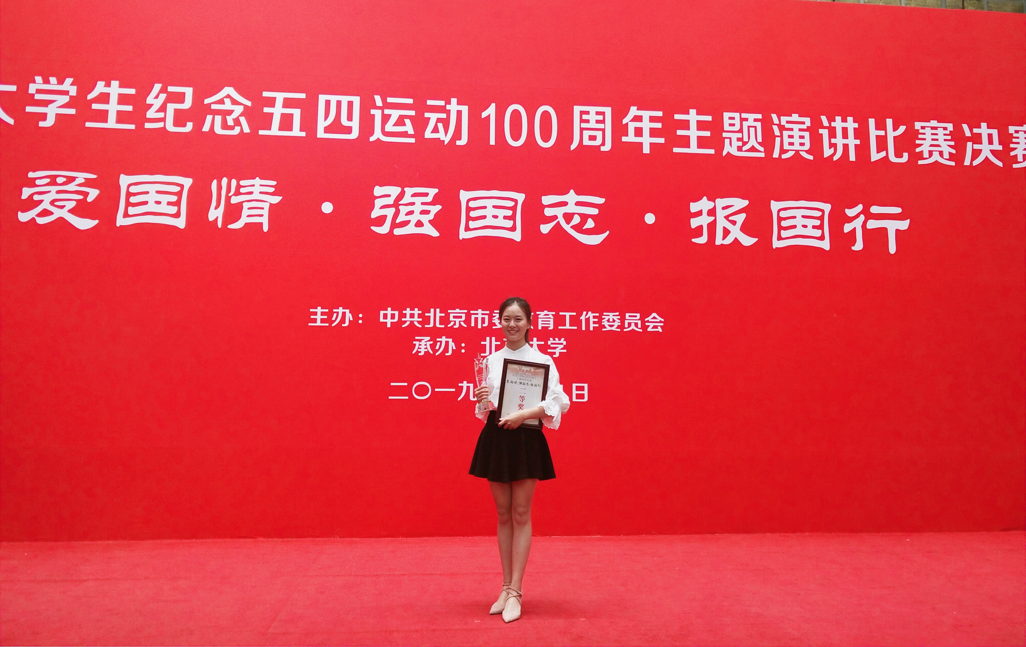 201959日,爱国情 强国志 报国行首都老员工纪念五四运动100周年主题演讲比赛在北京大学英杰交流中心举行,代表公司参赛的计类18-7班江泠睿同学以95.3分的成绩荣获二等奖。