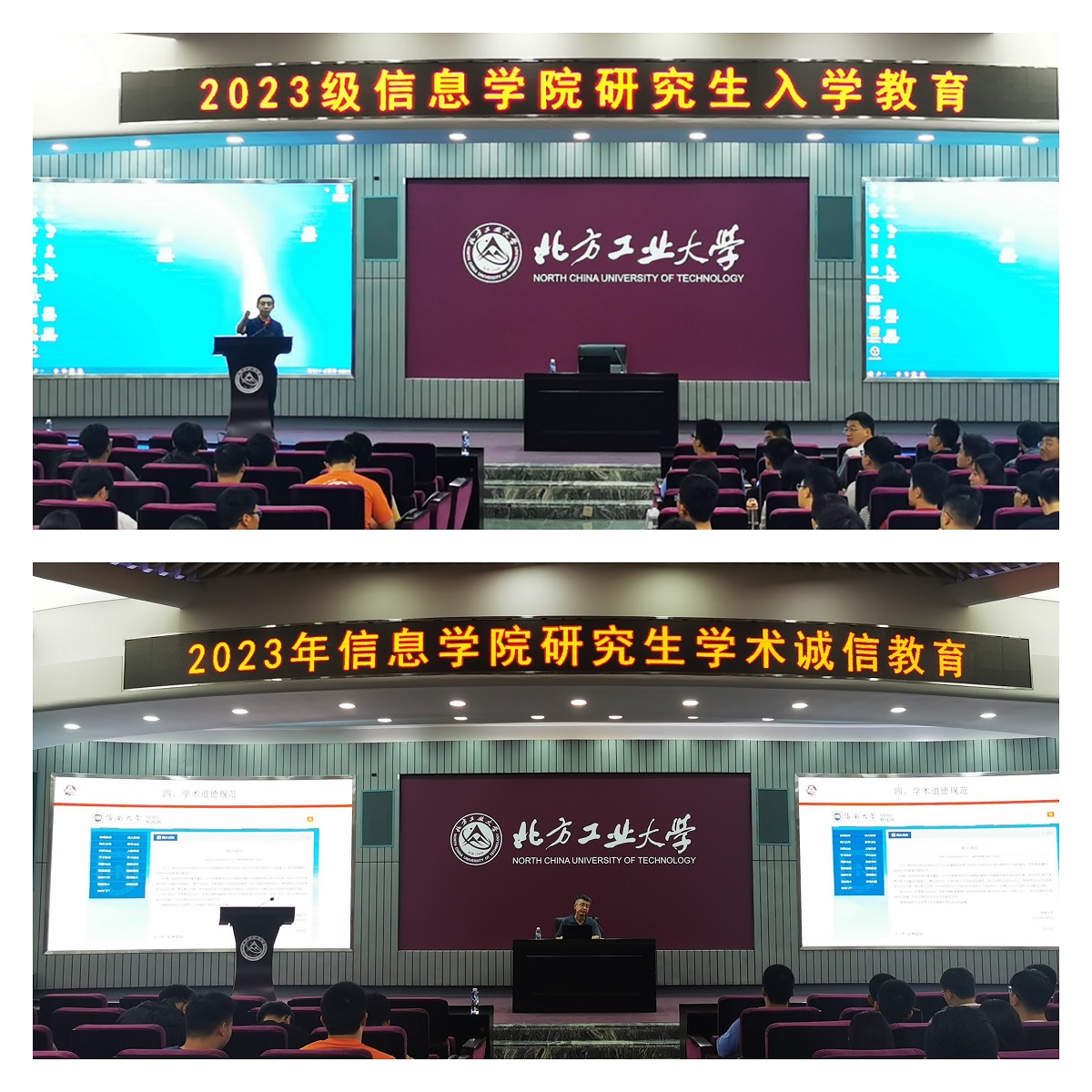经理马礼从导师队伍、软硬件设施、科研概况和科研团队建设、国际学术资助等方面展开介绍,希望同学们在未来的三年能够踏踏实实做好课题研究。副经理段建勇以案例展示了学术诚信的重要意义,警示同学们不可触碰学术道德红线。