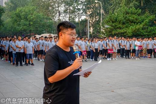 员工代表计18-2班刘雨辰同学进行国旗下演讲,激发同学科技报国之志。
