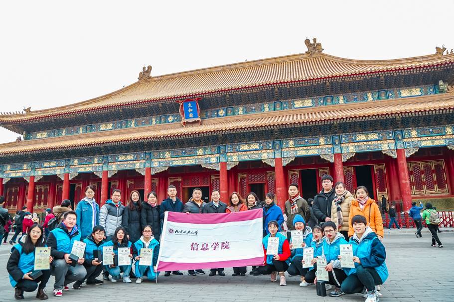 初冬时节的故宫,红垣溢彩,黄瓦流光。在故宫博物院宣教处工作人员的引领介绍下,志愿者一行从午门进入故宫,经内金水桥,穿过太和门,沿故宫中轴线,依次参观了故宫三大殿和后花园。志愿者们无不惊叹故宫建筑群的蔚为壮观,仔细品味着朱墙黄瓦、雕梁画栋、精贵展品,对故宫所蕴含深厚丰富的传统文化深表赞叹,更为能成为服务故宫博物院的一分子深感自豪。在威严宏伟的太和殿前进行了简短的故宫地区志愿服务项目总结,公司党委书记刘文楷、东城区文化和旅游局副局长马庆军分别为志愿者代表颁发了志愿服务证书和纪念品,对志愿者的辛勤付出表示感谢,并勉励同学们再接再厉继续为东城文化和旅游活动做出更大贡献。