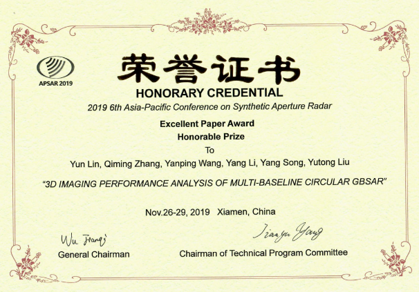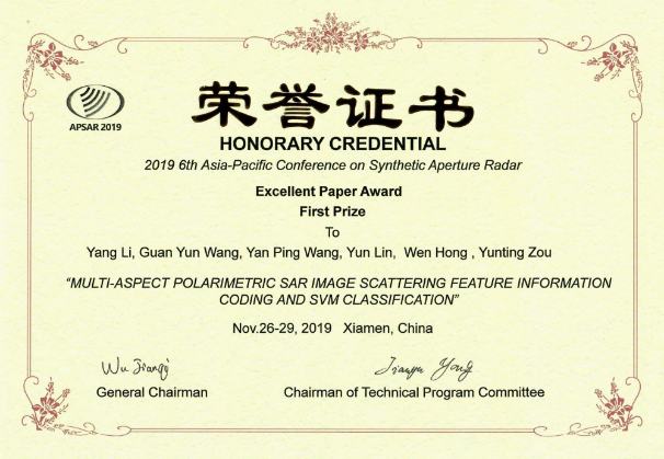 第六届亚太合成孔径雷达会议(APSAR 2019)于2019年11月26日至29日在厦门召开,这是APSAR时隔十年之后回归发源地中国。会议由中国电子学会主办,IEEE等多家机构协办。APSAR是亚太地区合成孔径雷达领域唯一的专业性学术会议。本届会议包括7个大会邀请报告和7个专题讲座,并有36个口头分会场和11个张贴分会场,总计录用论文359篇,500余名国内外学者参加了本次会议。经过专题推荐、大会评议,共评出大会优秀论文一等奖3篇、二等奖6篇、荣誉奖10篇。