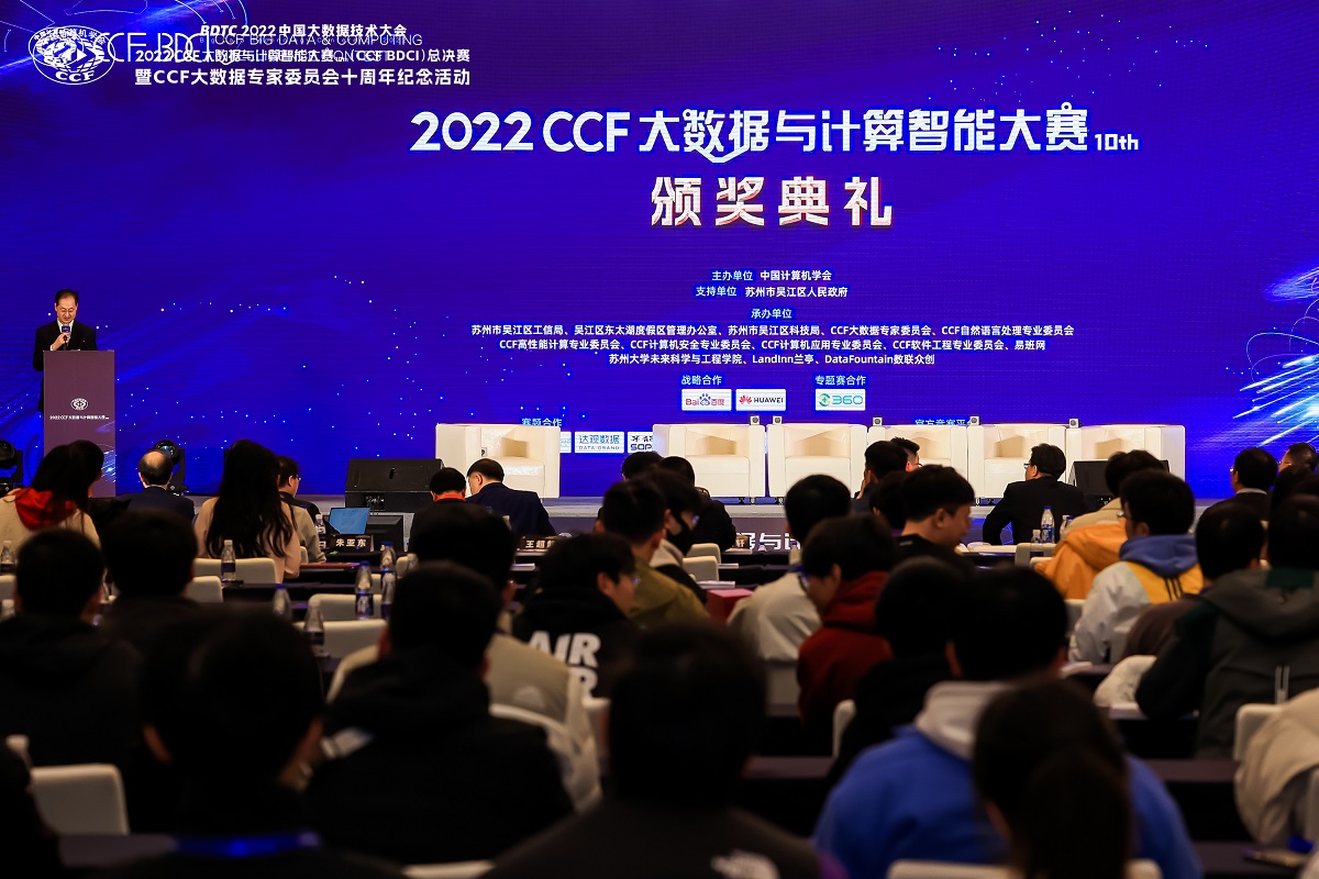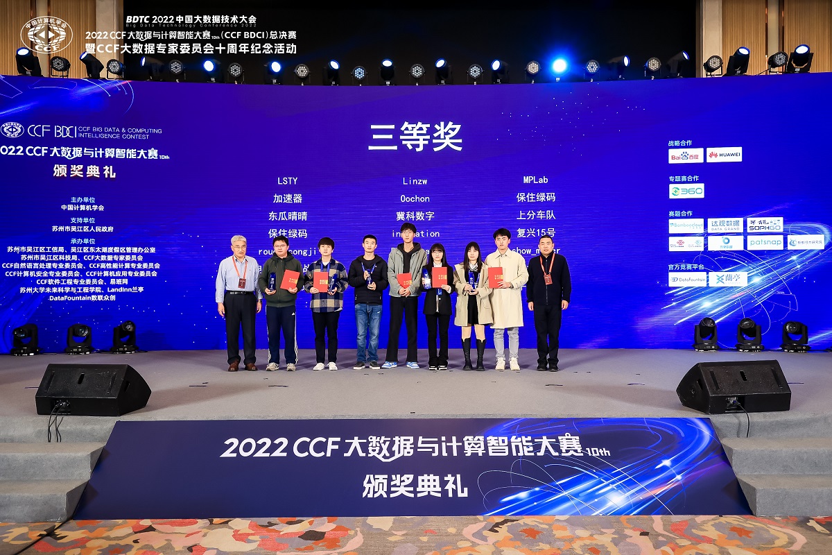 2023年2月24日,由苏州市吴江区人民政府支持,苏州市吴江区工信局、吴江区东太湖度假区管理办公室、苏州市吴江区科技局、CCF大数据专家委员会、CCF自然语言处理专业委员会、CCF高性能计算专业委员会、CCF计算机安全专业委员会、CCF计算机应用专业委员会、CCF软件工程专业委员会、以及DataFoutain数联众创等单位共同承办的CCF大数据与计算智能大赛(CCF BDCI)总决赛在苏州湾艾美酒店举行。由伟德体育伟德体育官方网站大规模流数据集成与分析技术北京重点实验室研究生郭志城、梅宇生、陈元组成SDIA Sparker团队获得大赛三等奖。梅宇生同学代表团队参加了大赛现场活动和颁奖典礼。