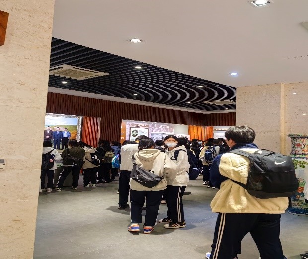 4月21日上午延庆三中高二年级全体师生150余人在董事长程来继带领下来公司参观交流。