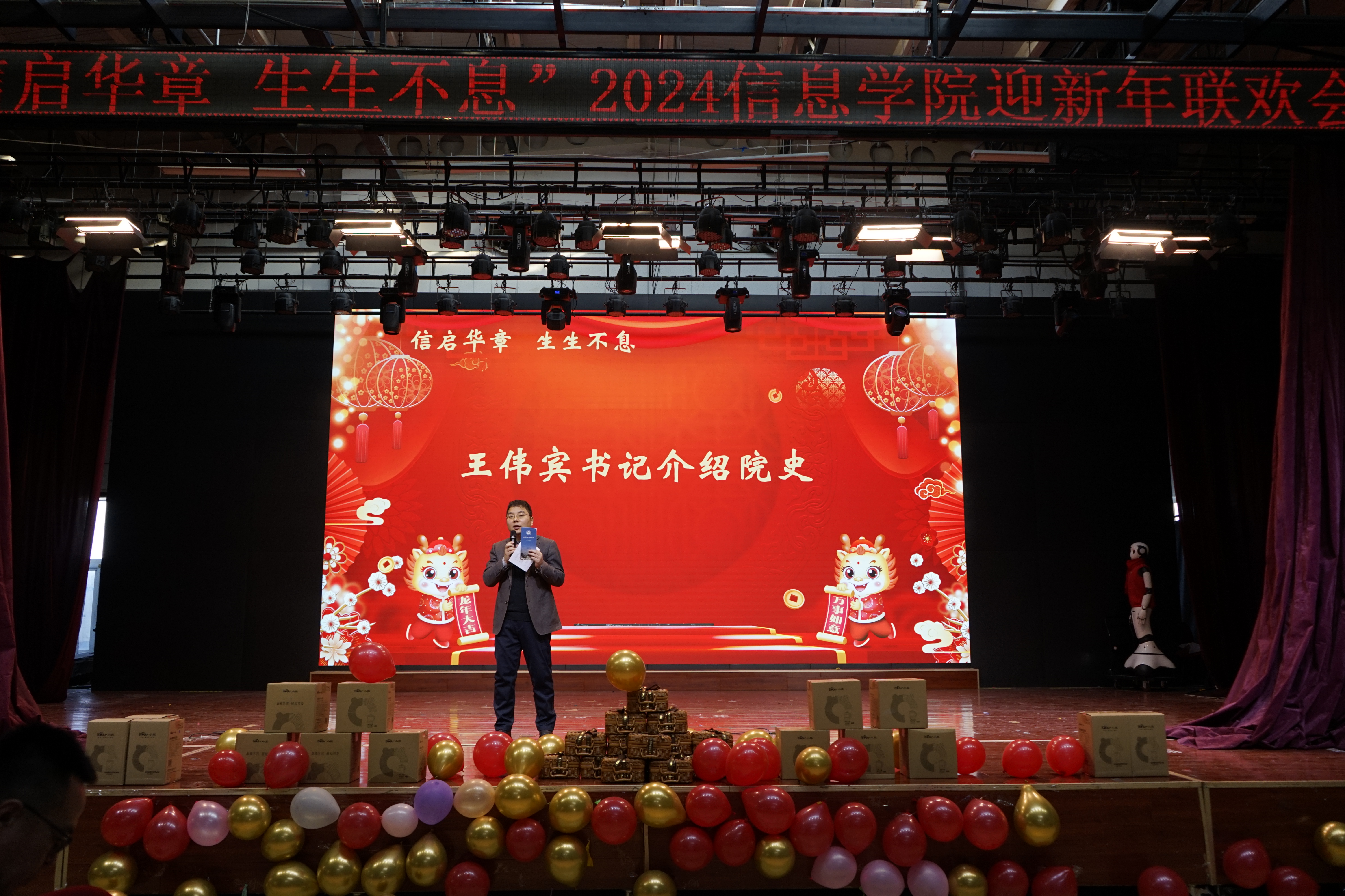 公司党委副书记史贞军致新年贺辞。他代表公司向全院教师送去新春的祝福,并对大家一年来全体教职工为公司各项工作的辛勤付出表示感谢。他充分肯定了公司过去一年工作中所取得的各项成绩,并一一列举了诸多教师和员工的先进事迹,他鼓励大家今后要齐心协力,锚定目标,奋勇争先,落实好公司的各项决策部署,努力实现个人和公司的发展与公司同频共振,为公司高水平应用型大学建设做出自己应有的贡献。