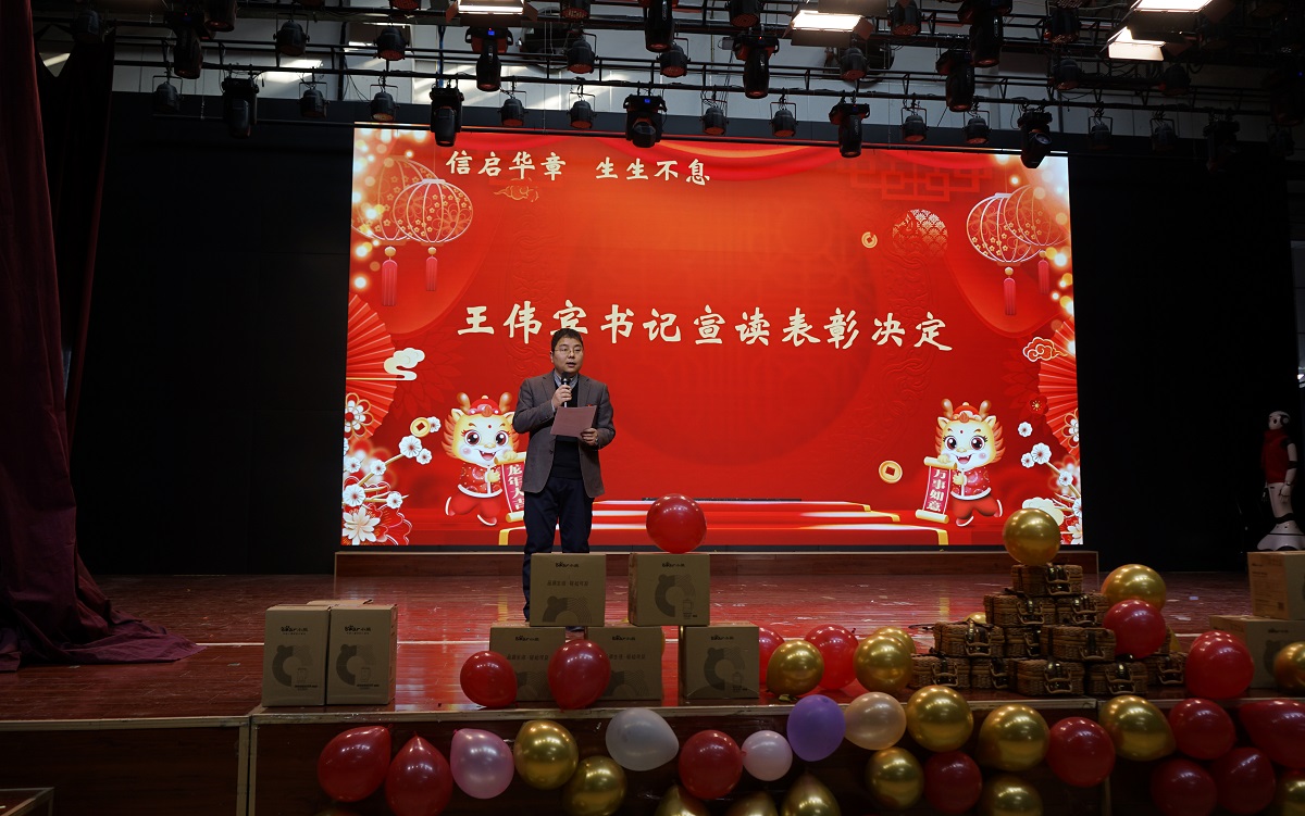公司党委书记王伟宾宣读2023年表彰决定,与会领导对一年里在党建工作、公司产品、科学研究以及老员工思想政治工作中做出突出成绩的老师进行颁奖。